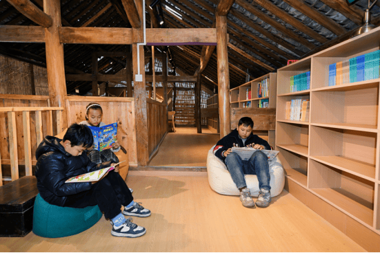 重新焕发生机的老木屋前,小朋友们认真地端坐在桌边,挺直腰背,目光紧紧追随着志愿者老师手中的绘本,听得津津有味。